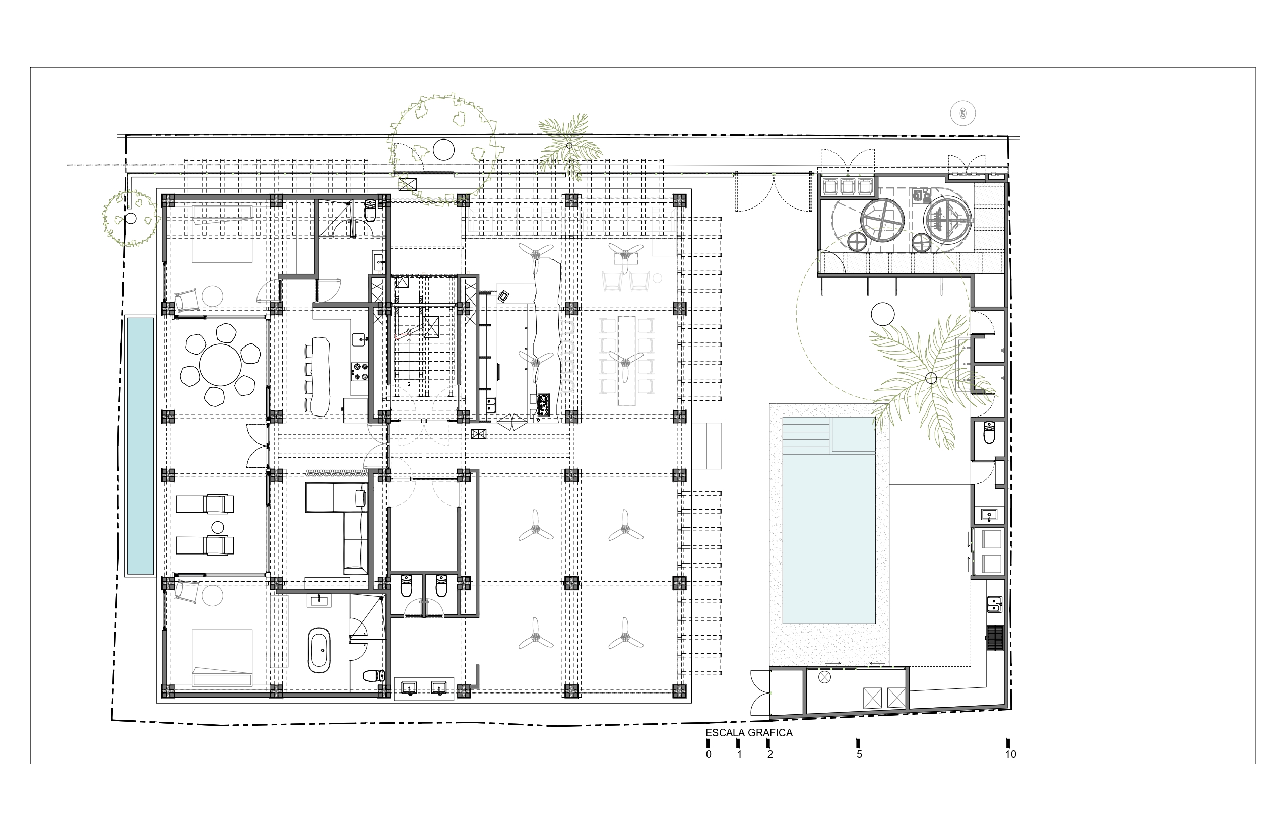 Entre sus espacios destacan un área multifuncional de 120 m² adaptable como coworking, barra o zona para yoga y pilates, así como una alberca con área de asador. Estas amenidades refuerzan una visión de estilo de vida consciente, relajado y en contacto con el entorno.