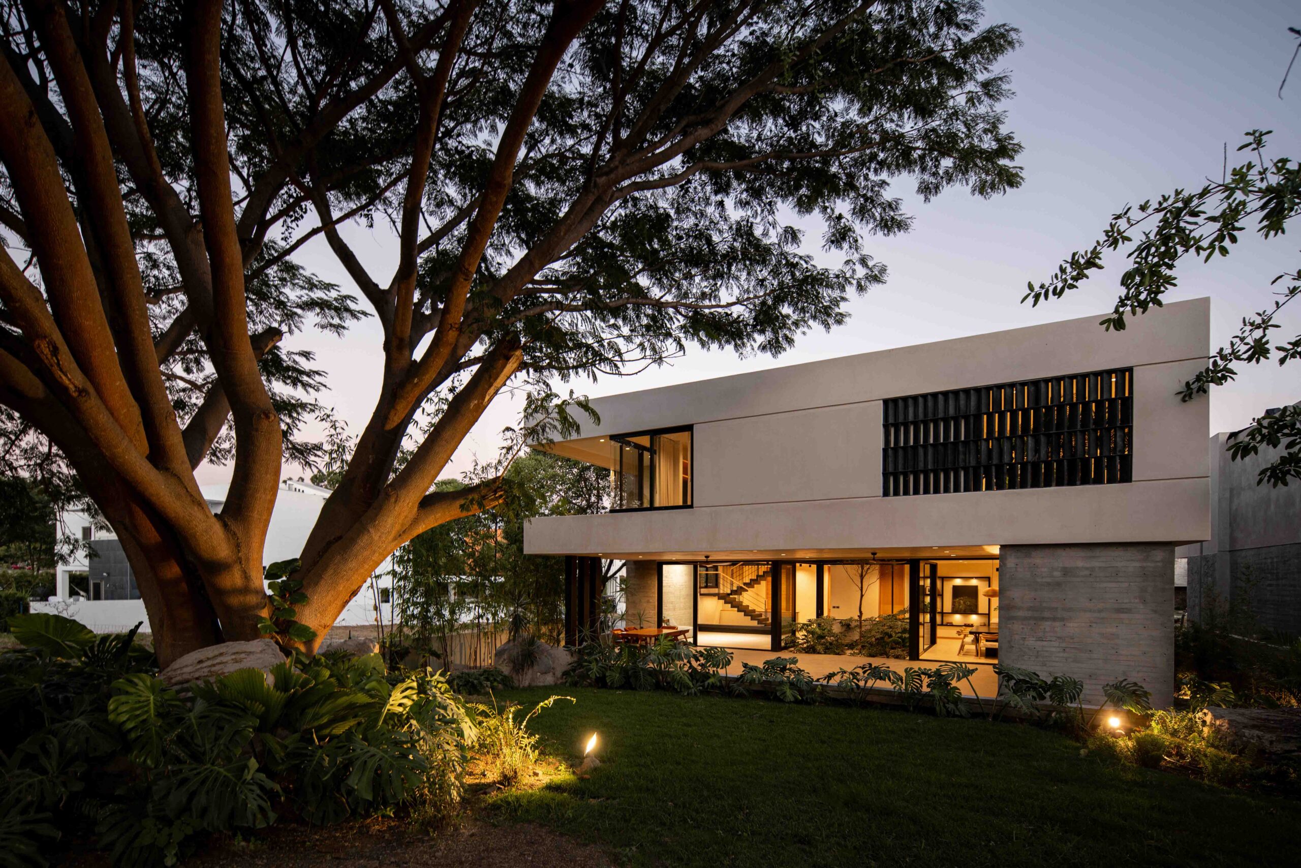 Casa Manak nace con la intención de fundirse con su contexto, abrazar la naturaleza y dejarse penetrar por ella. Es un refugio que dialoga con el entorno, respetando y enalteciendo su belleza. Sus ventanales enmarcan la vista hacia el campo de golf y las áreas verdes, prolongando los límites de la casa hasta donde alcanza la mirada. Así, en la parte norte, la terraza de la recámara principal se convierte en un mirador privilegiado desde donde el volcán se contempla en su majestuosidad cambiante.