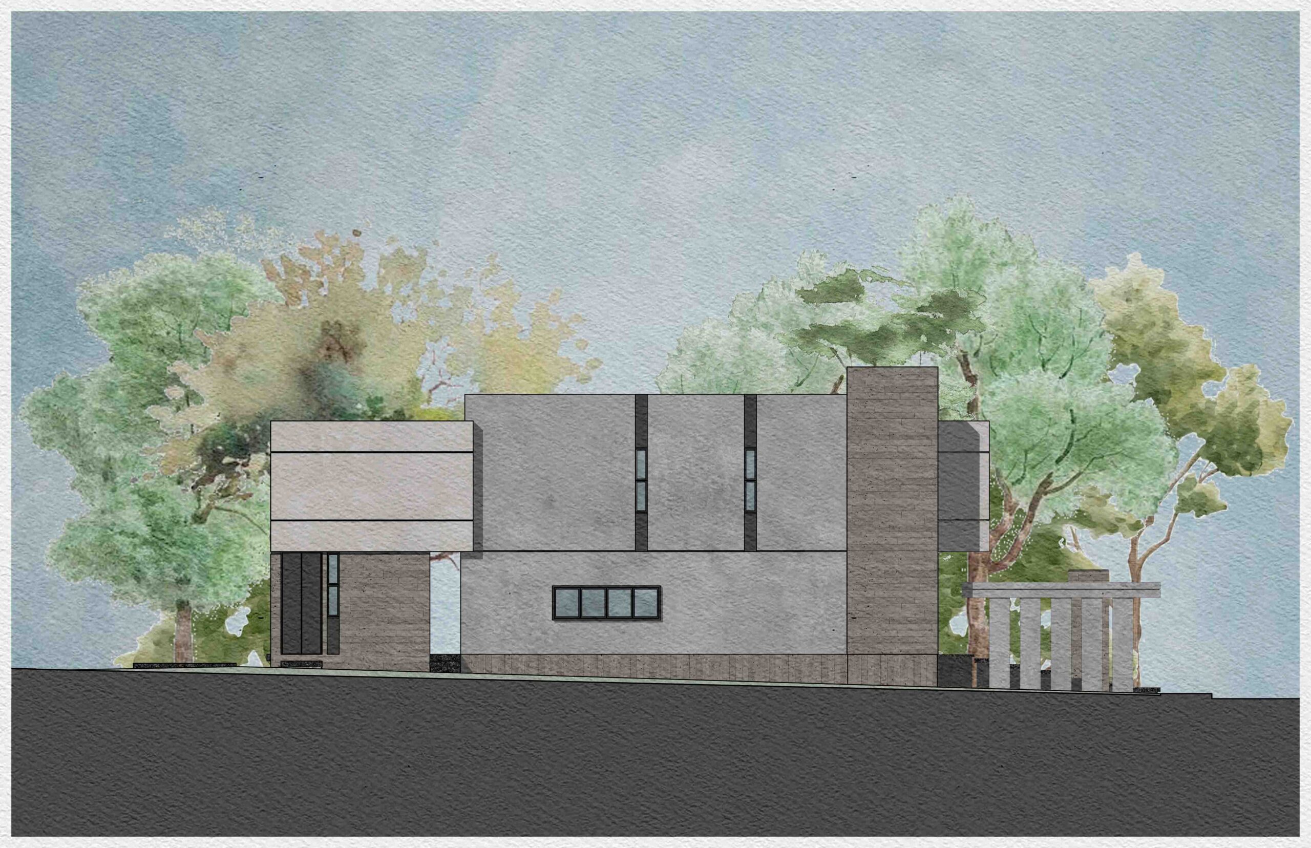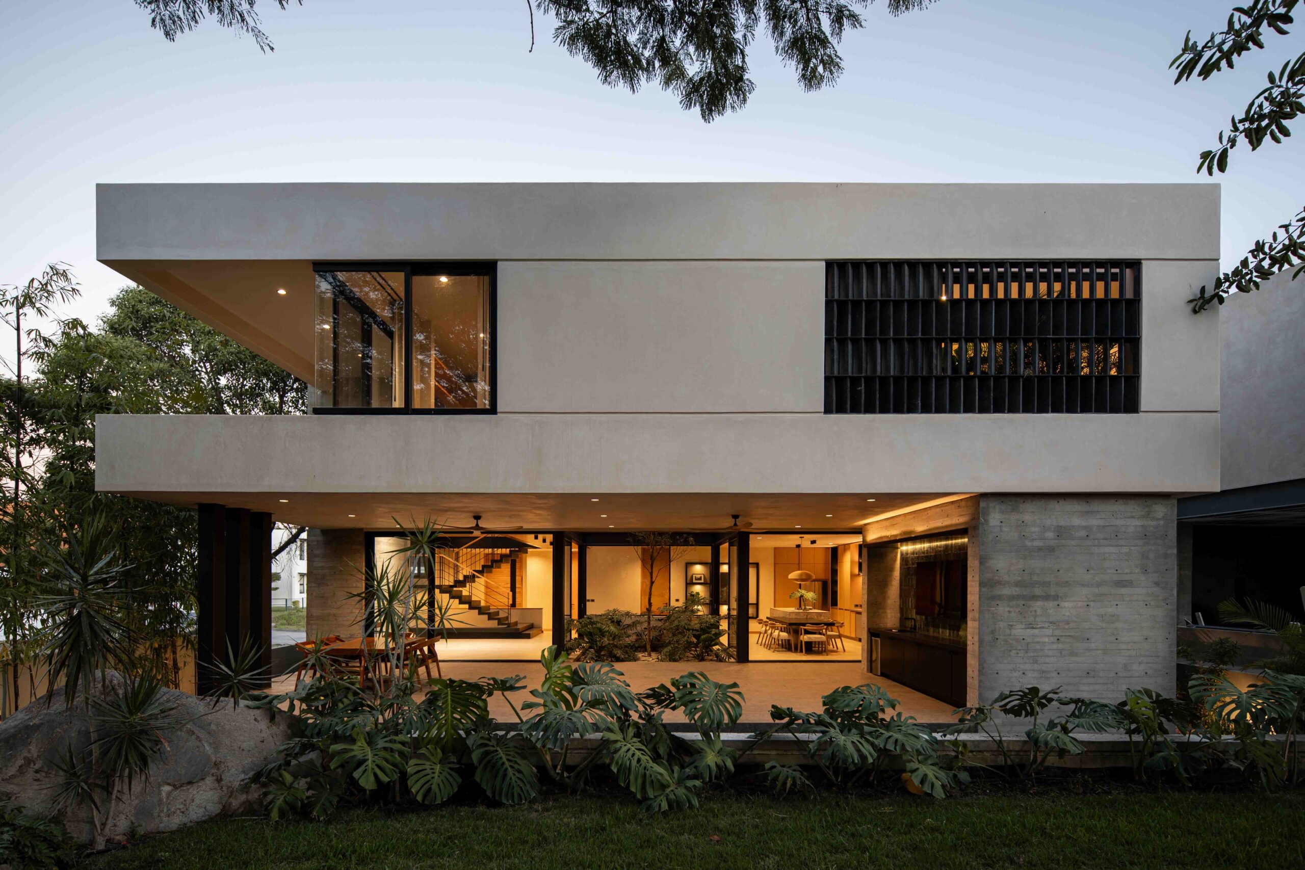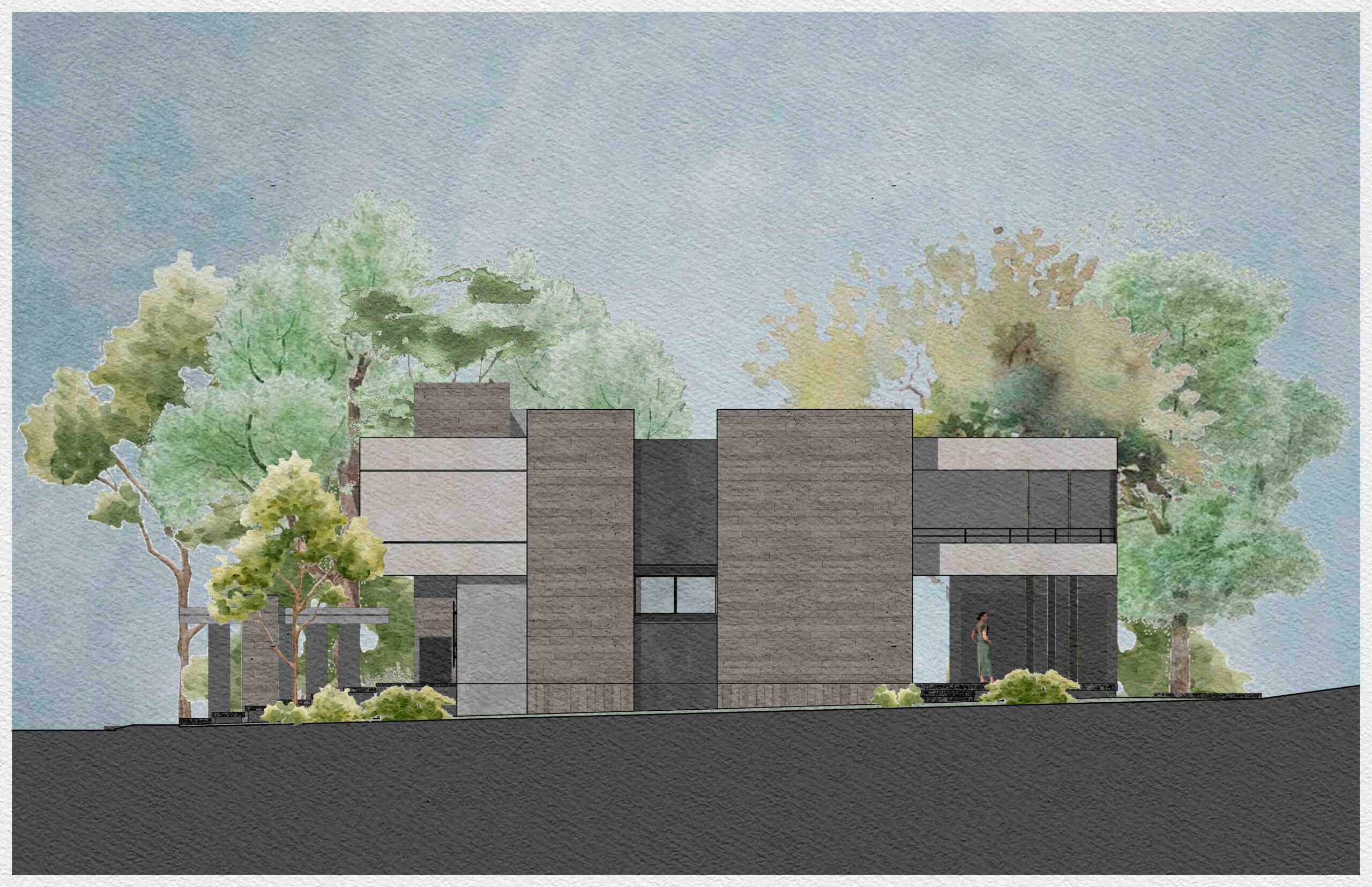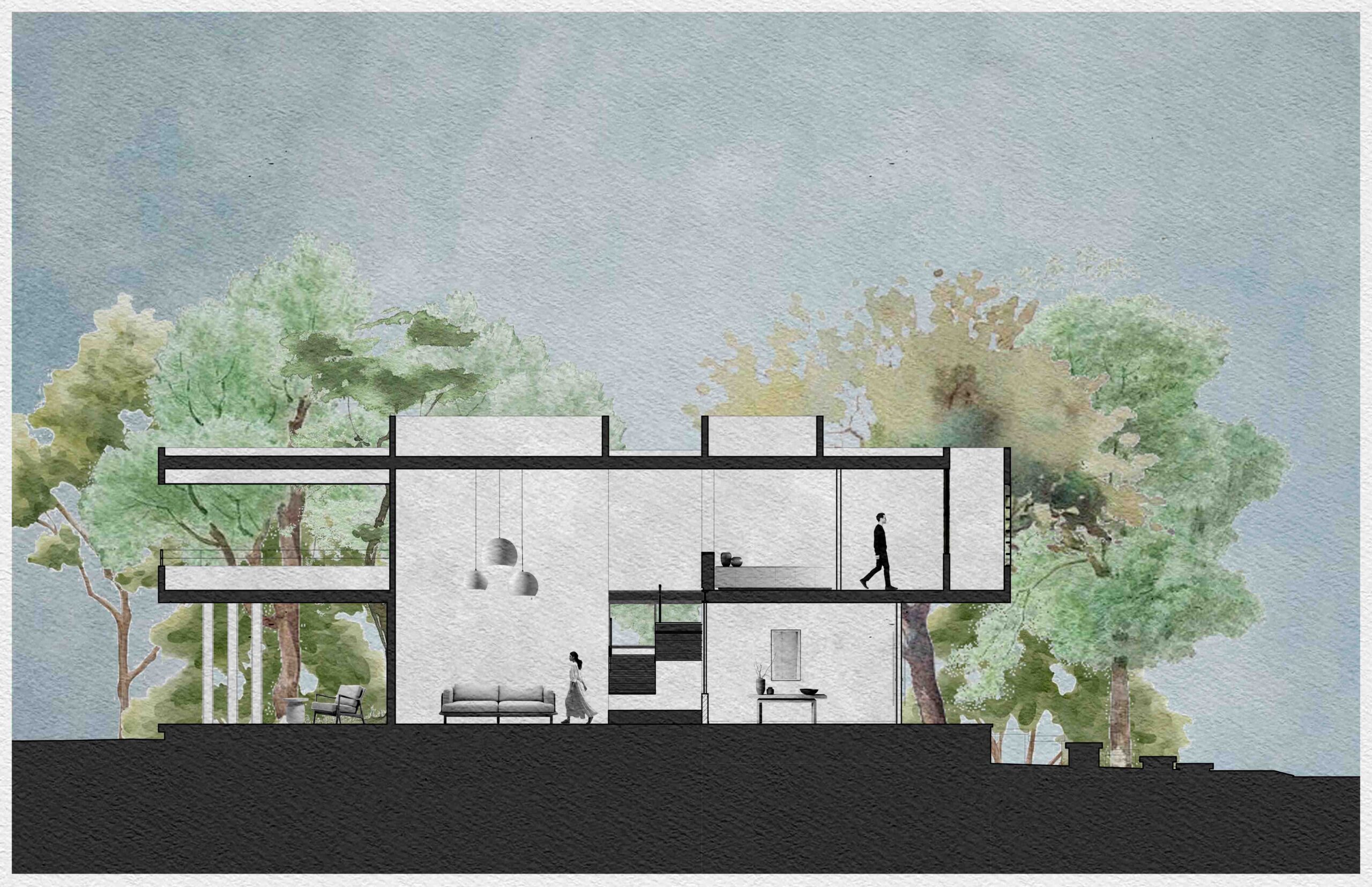 El corazón de la vivienda es un patio interior que ordena y conecta los espacios. Más que un vacío, es un umbral, un núcleo de luz y aire que permite que la casa respire, convirtiéndose en la tangente entre la arquitectura y el entorno natural. Su diseño está pensado para enriquecer la experiencia de quienes lo habitan: la luz cambia a lo largo del día, el viento se percibe entre las hojas y la lluvia deja su rastro en la piedra.