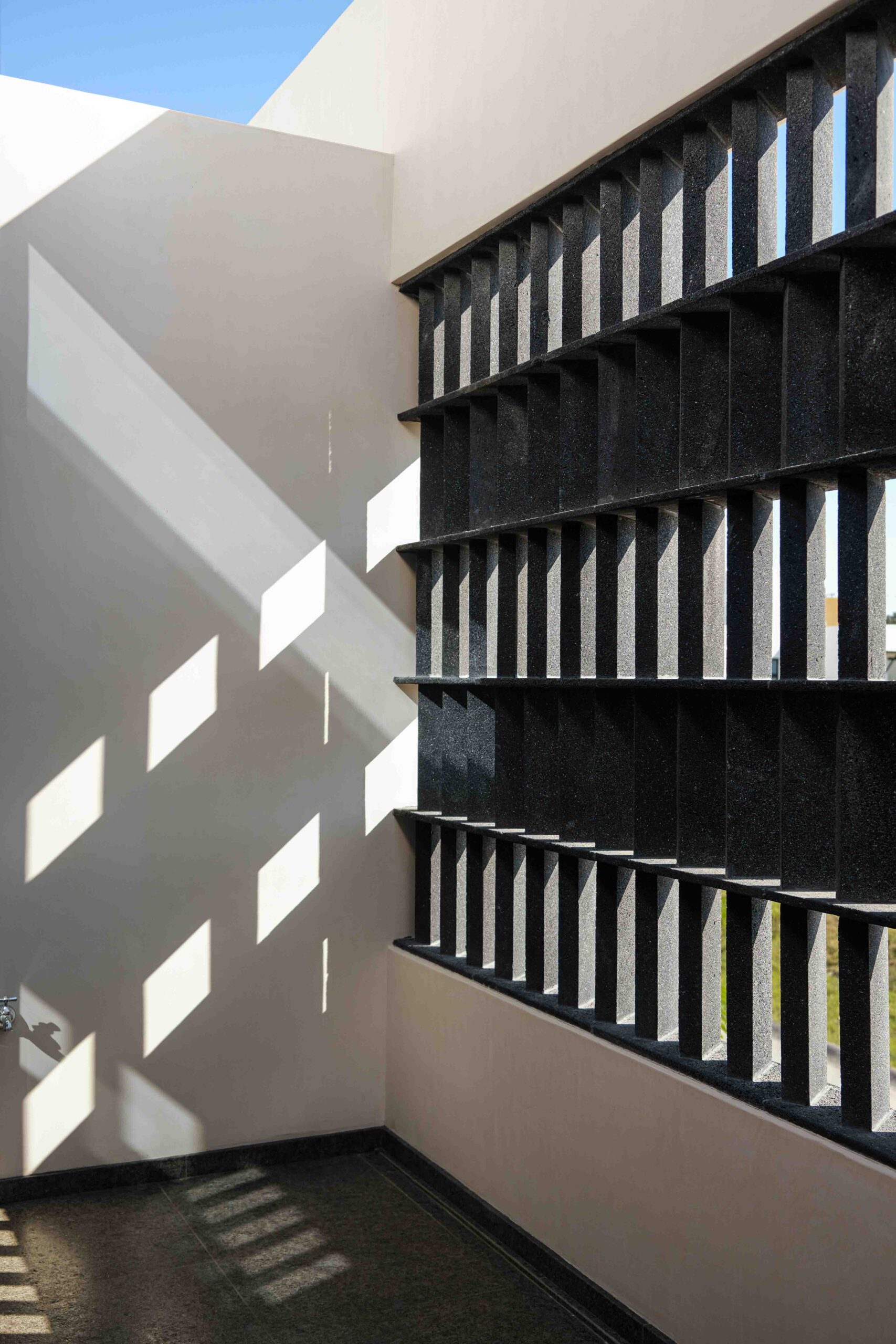 La celosía de piedra volcánica, elemento distintivo del proyecto, actúa como un tamiz entre el interior y el exterior, es una capa que insinúa sin mostrarlo todo, filtrando la luz y el viento, proyectando sombras que se desplazan con el tiempo. Este es también un acto poético: un homenaje al volcán al que la casa dirige su mirada, integrando en su piel la memoria de la tierra que le da origen.