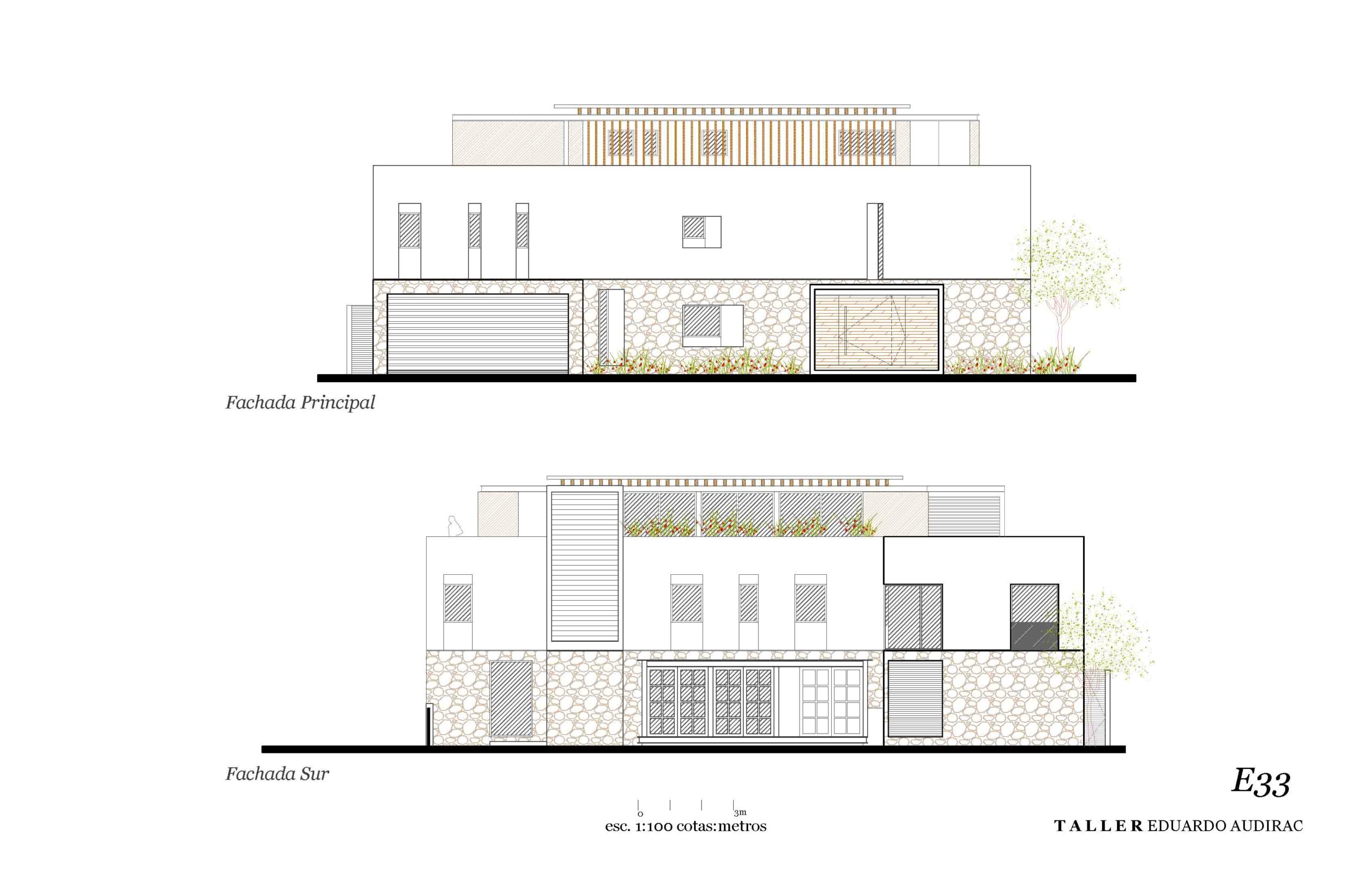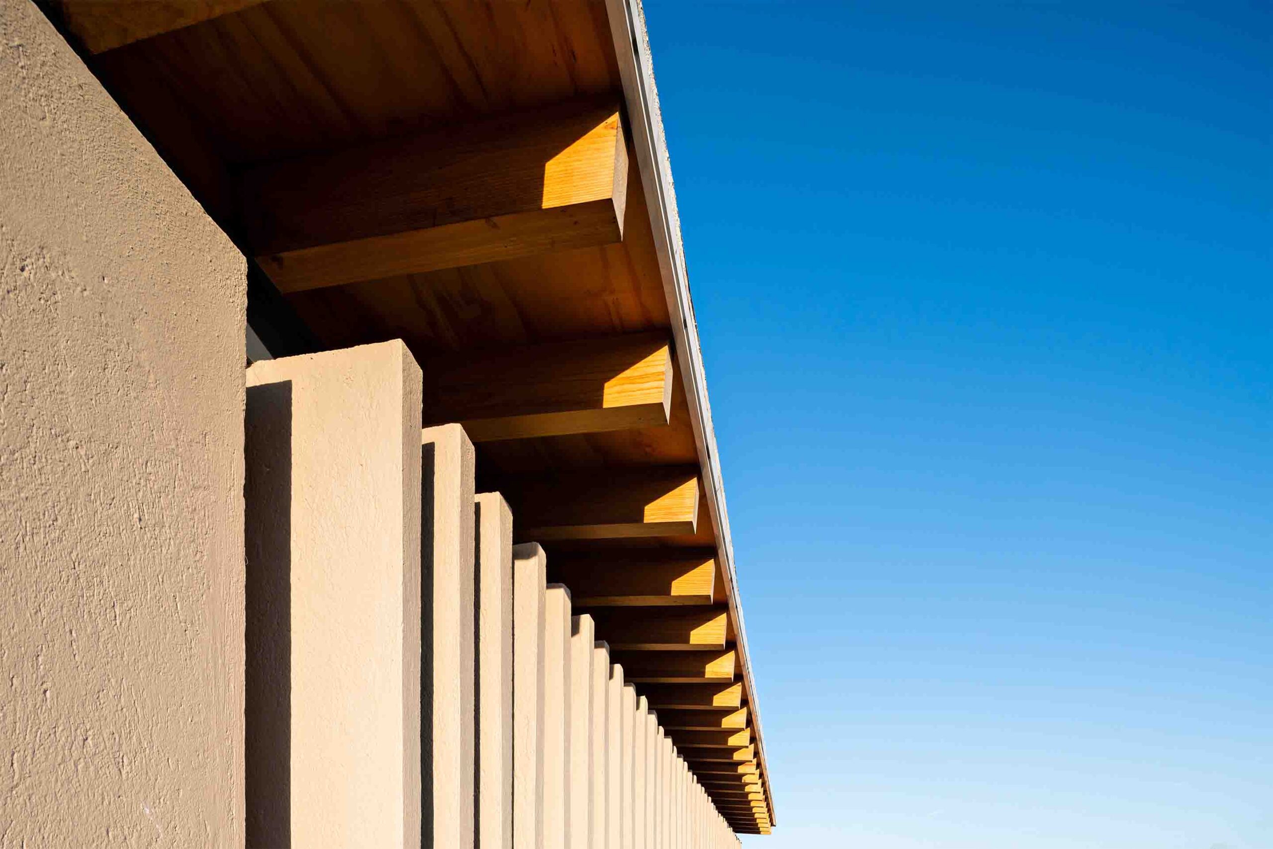 La volumetría inicial parte de una clásica ‘caja de zapatos’. En un segundo acto, se trabaja en ‘romper la caja’, buscando el balance entre los macizos y los vanos, y cuidando la profundidad de los abocinados y perforaciones, que funcionan como el diafragma de una cámara fotográfica. Esto aporta cuerpo y presencia a la masa volumétrica. En un tercer acto, se define la imagen: huesos y pieles expuestos y resistentes a las condiciones propias del sitio y al paso del tiempo. Los materiales empleados son naturales y característicos de la región, conjugando maderas, vigas metálicas y aluminio tipo europeo.