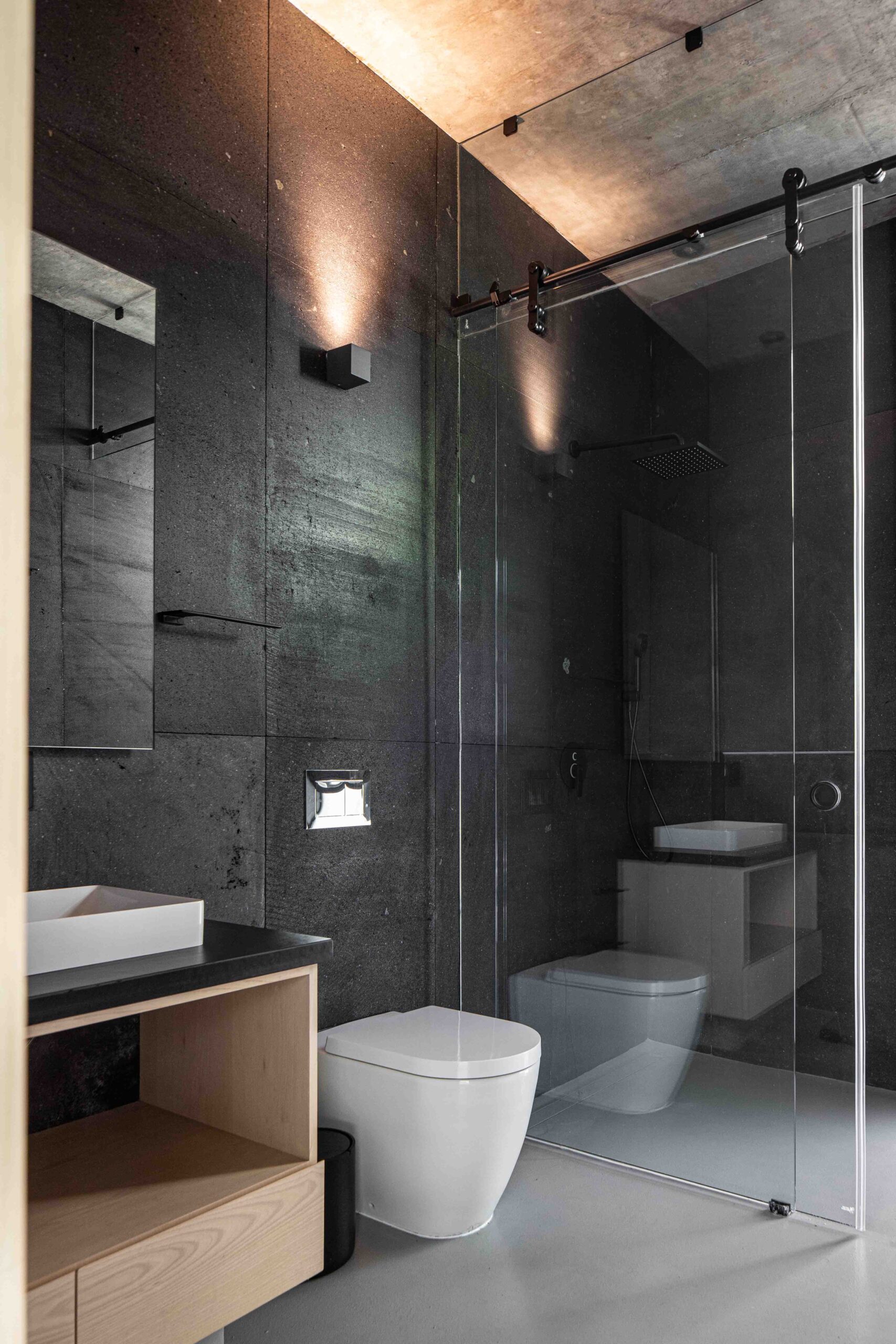 En el ala izquierda se sitúa la recámara secundaria, que se despliega en doble altura con un entrepiso que alberga un estudio íntimo. El programa se complementa con una sala de baño y un área de juegos. En esta misma ala se ubica un estudio de trabajo independiente, que remata en la terraza posterior, compartiendo visuales al jardín ya la alberca, en armonía con la vocación introspectiva del lugar.