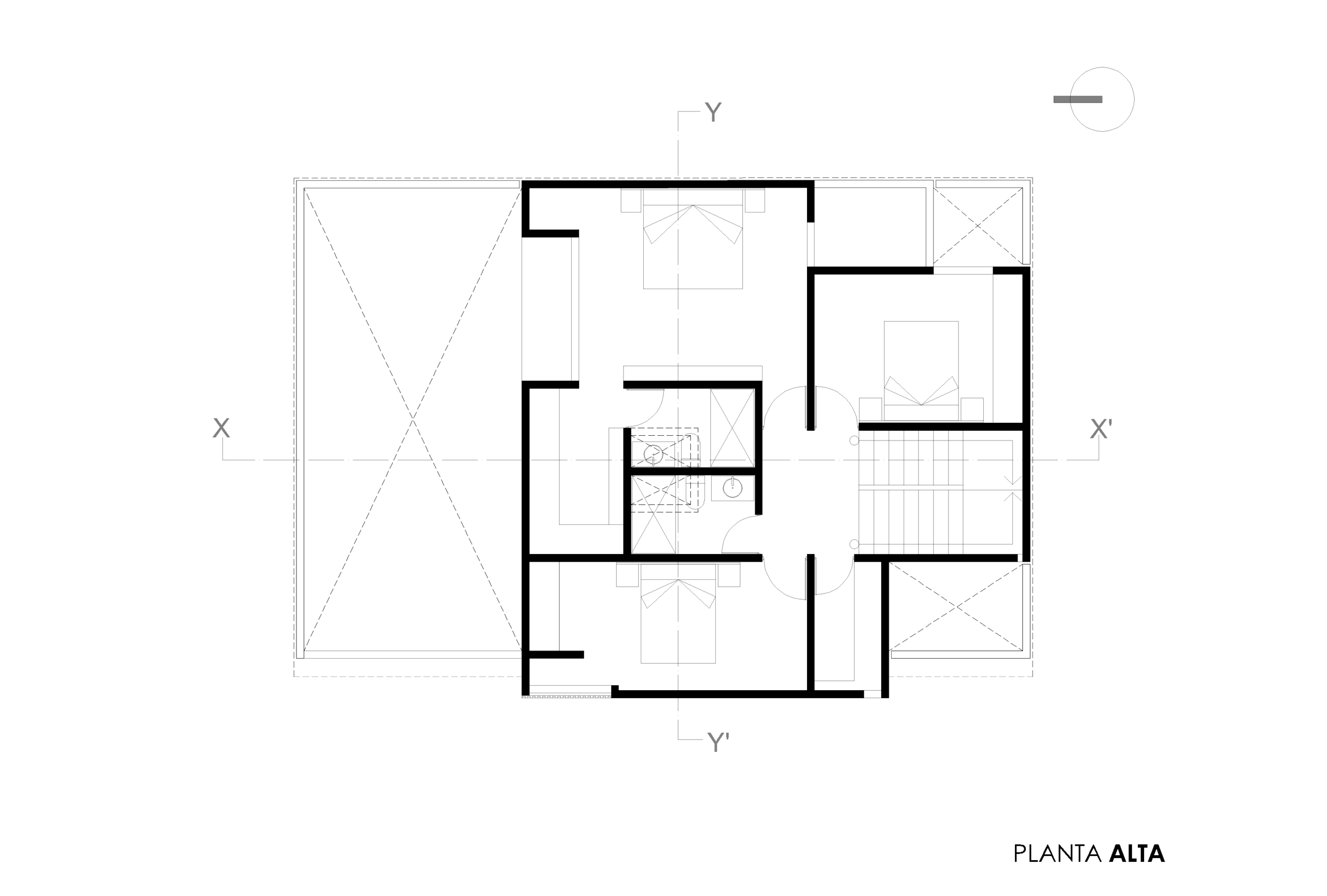 El segundo nivel nos recibe con los espacios más privados de la vivienda. Aquí se encuentran dos recámaras secundarias con baño compartido y la recámara principal con su propio baño y vestidor. Cada habitación ha sido planteada para aprovechar la ventilación y la entrada de luz natural, reduciendo la necesidad de iluminación artificial durante el día lo cual crea un espacio más confortable.