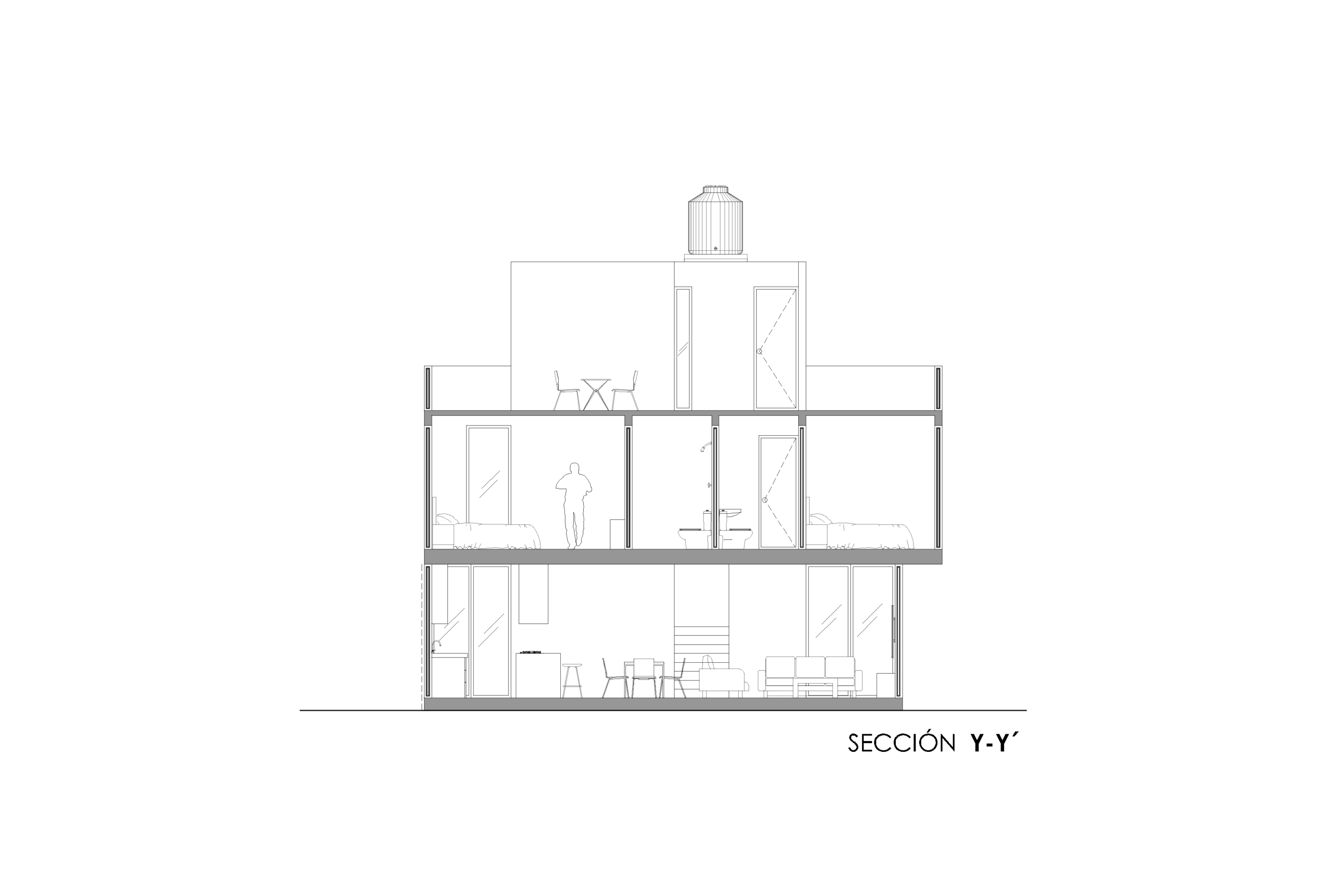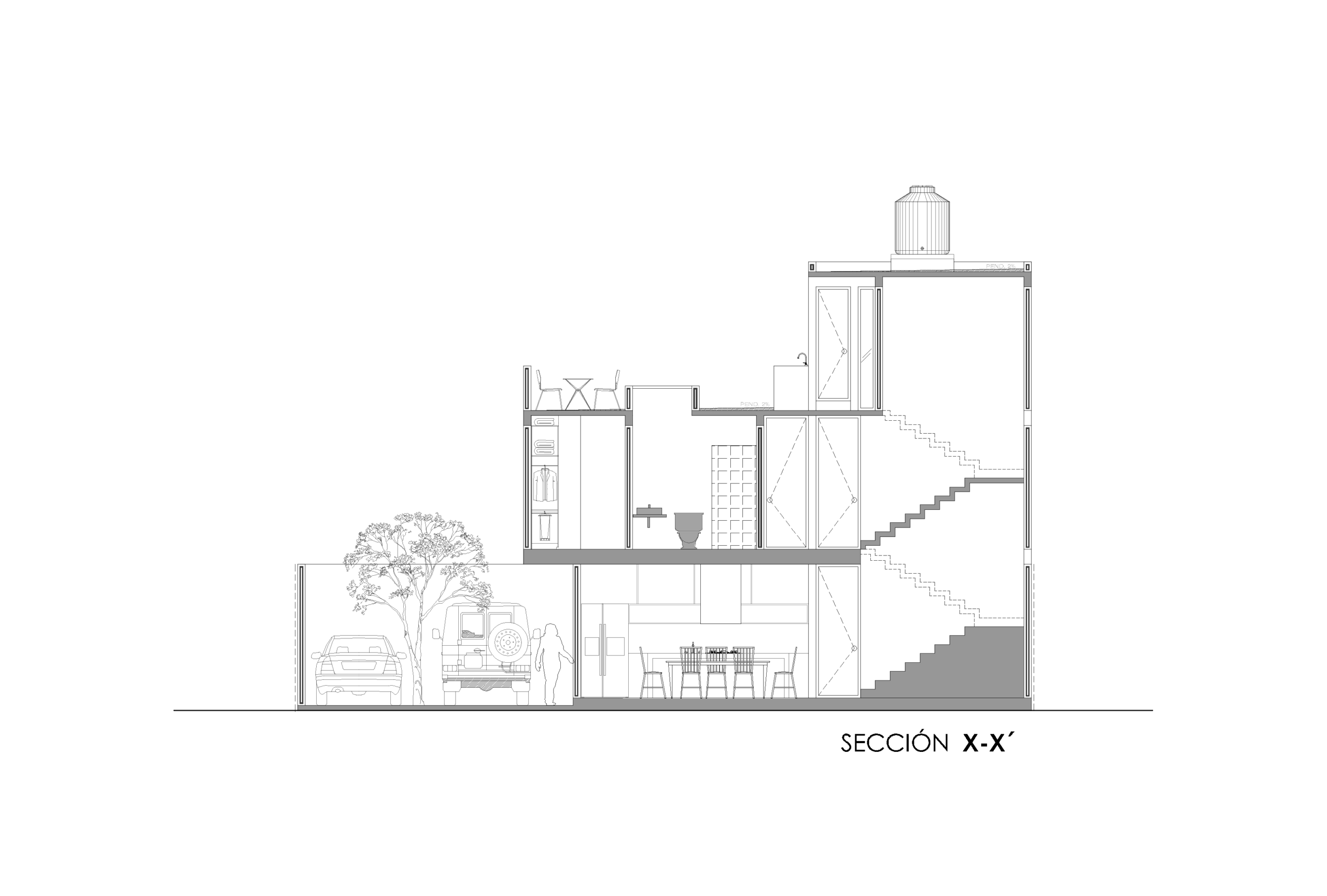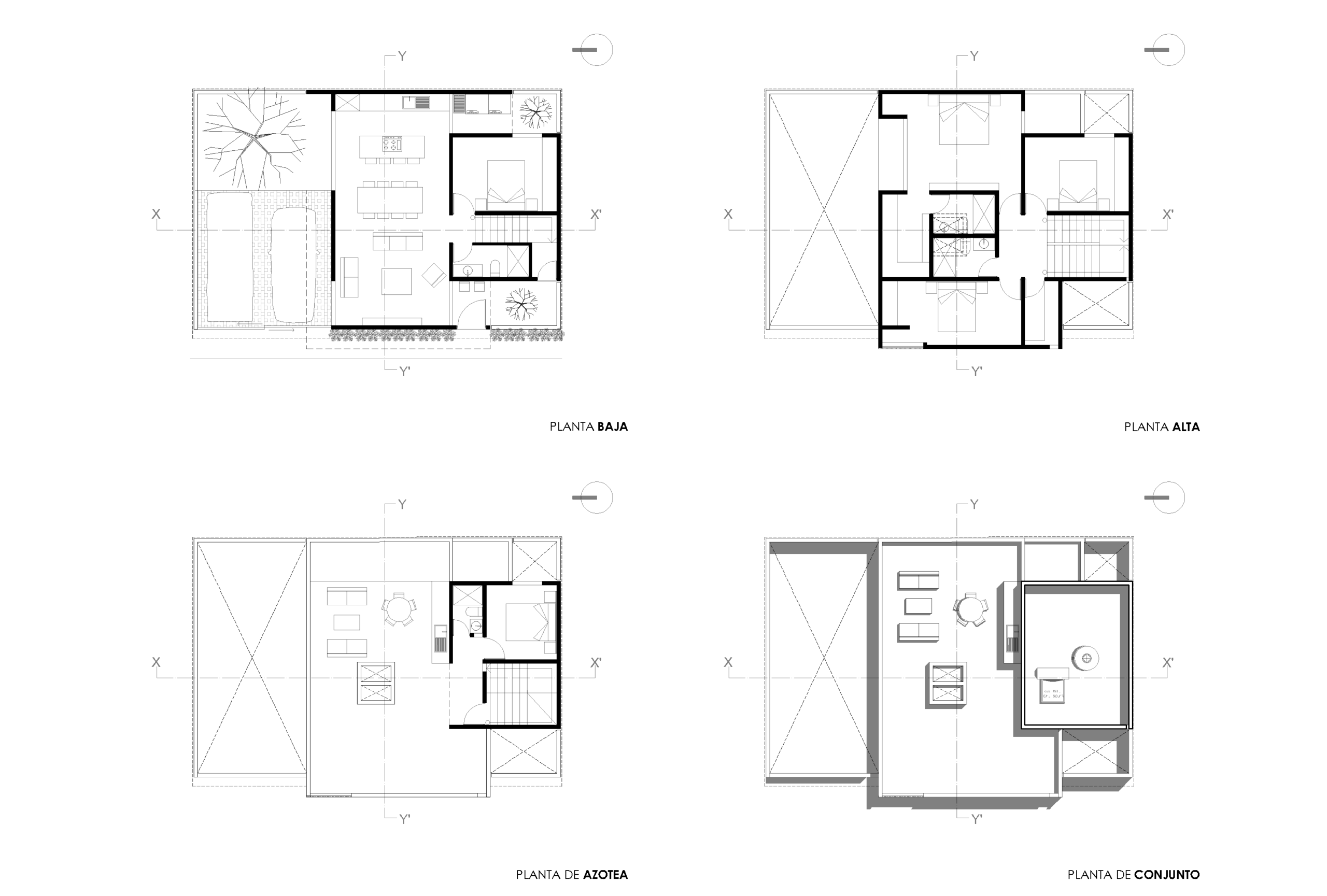 Finalmente, la volumetría del proyecto es el resultado de un juego de volúmenes donde uno se impone sobre otro, ofreciendo así protección frente a los elementos del entorno y creando un ambiente seguro y acogedor para quien la habite. Cada decisión del diseño refleja la intención de lograr una vivienda funcional, estética y en armonía con su contexto inmediato pensando en las necesidades cotidianas de sus habitantes.