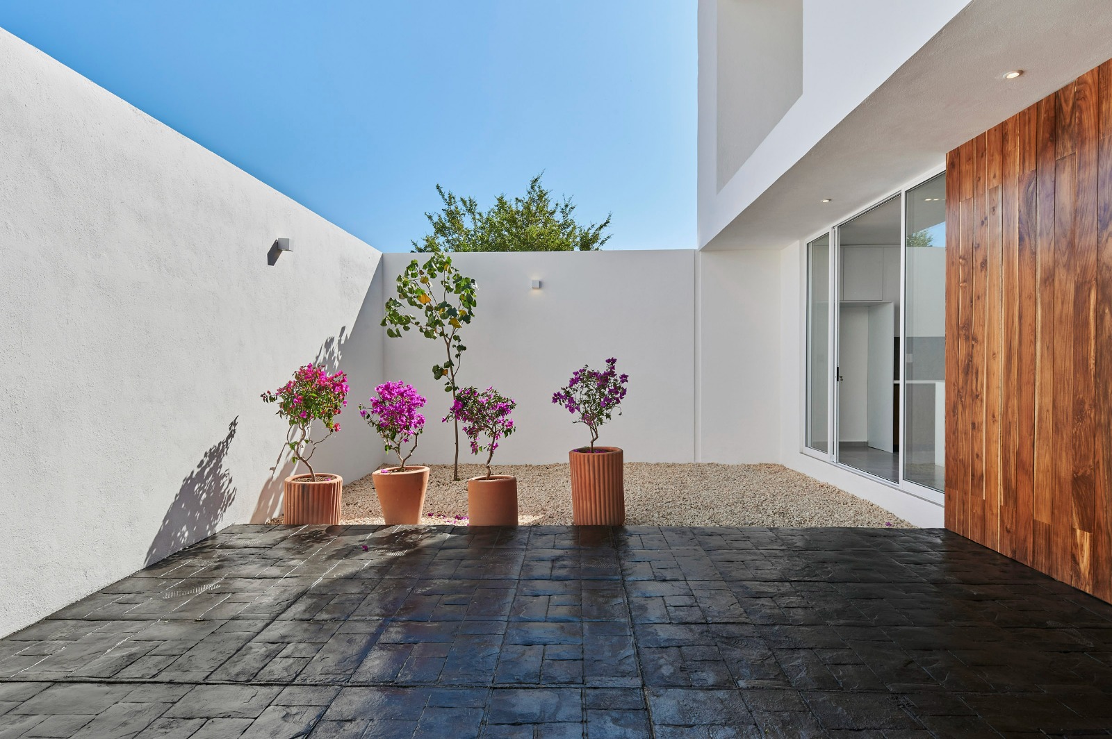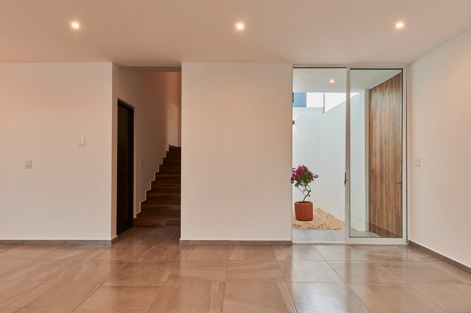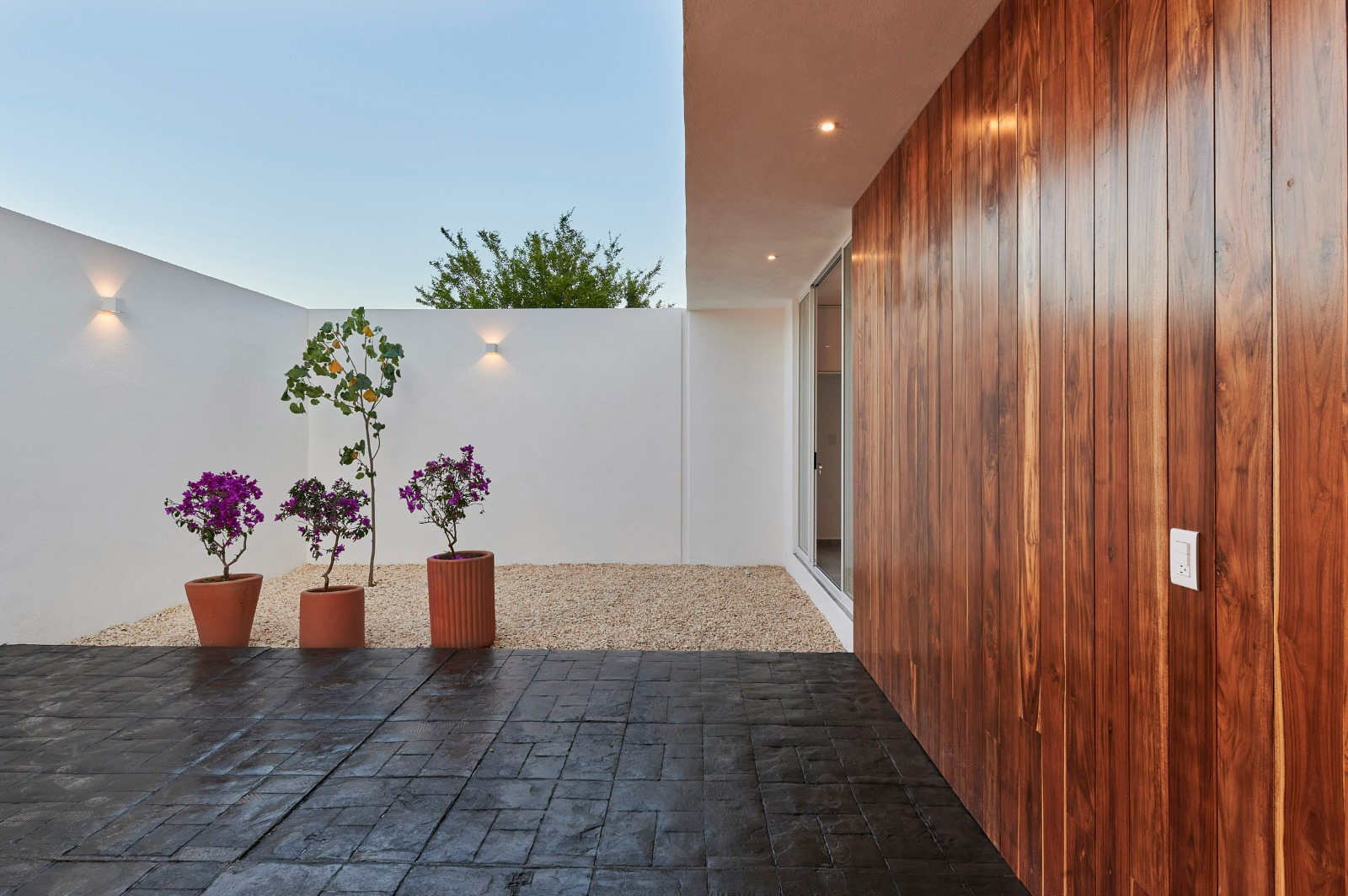Este patio, pensado como un pequeño respiro verde, complementa el interior al incorporar vegetación ayuda a generar un ambiente agradable y una sensación de bienestar. La elección de este tipo de vegetación también responde a un enfoque de sostenibilidad, pues requiere poco mantenimiento y se adapta perfectamente al clima de la región.