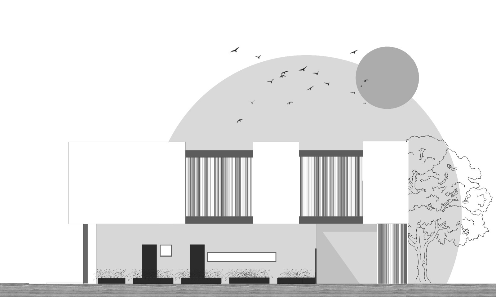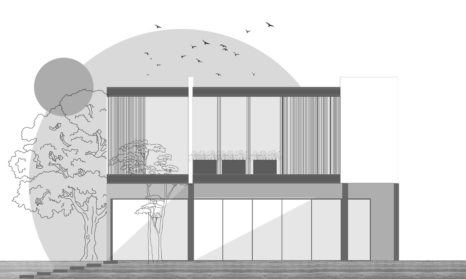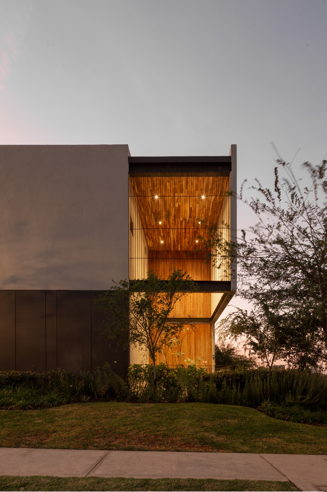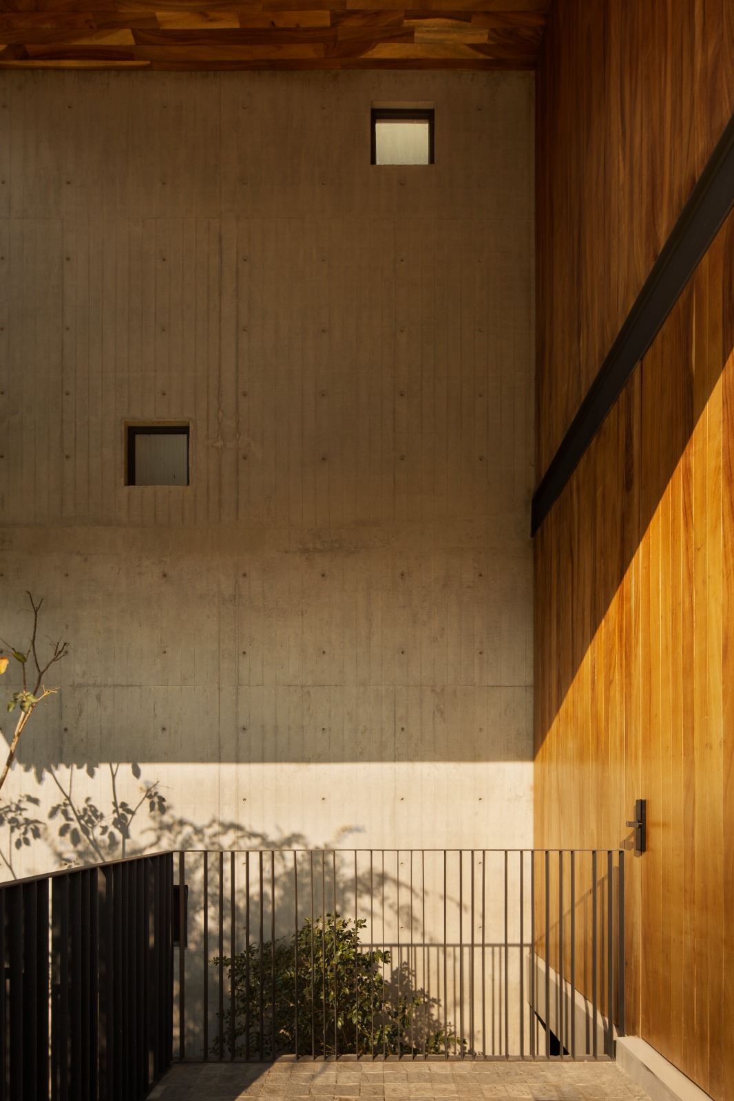 La dialéctica de los materiales, concreto-madera-acero integran el proyecto para dar calidez en su interior y conectar los diferentes espacios del exterior.