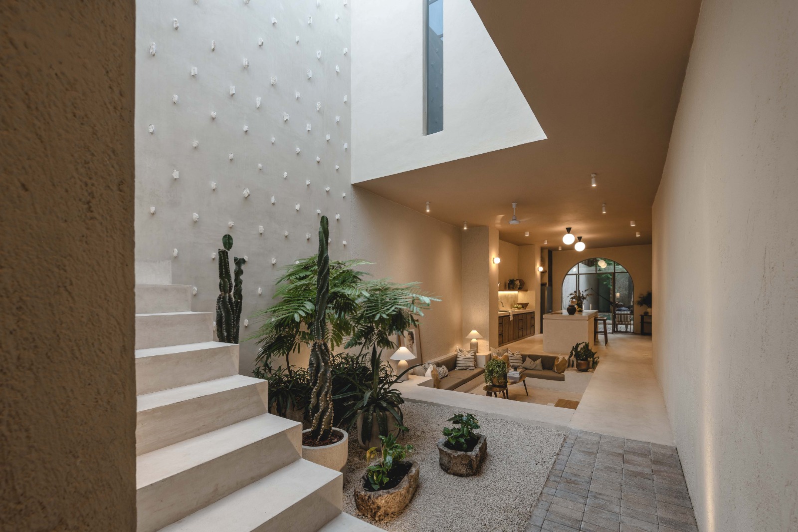 Casa Tamarindo responde también a una necesidad muy personal de nuestro estudio: crear arquitectura emocional, donde cada espacio sea una sorpresa. A través de secuencias espaciales cuidadosamente pensadas, cambios de escala, texturas y luz, la casa busca provocar sensaciones y despertar una conexión íntima con quien la habita.